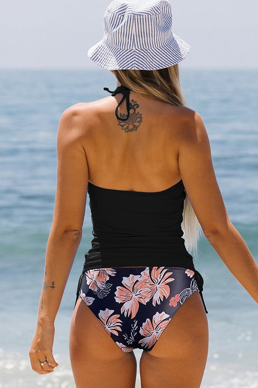 Fashion Halter Neck Floral Print Tankini Set