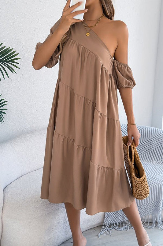 Fashion Irregular Solid Color Casual Midi Dress