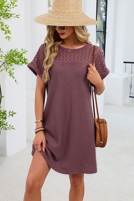 Fashion Round Neck Hollow Solid Color Casual Tops